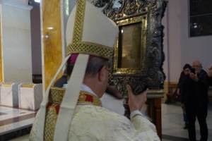 The Holy Veil remained the property of the Leonelli family for nearly a century, until a family member in need of money sold the Veil to Don Antonio Fabritiis, who in turn gave it to the Capuchins in 1638.  The Holy Veil, called the “Il Volto Santo,” was kept in a dimly lit side chapel until the church was renovated in 1960, when it was decided that the Veil should be moved to a more prominent place behind the altar.