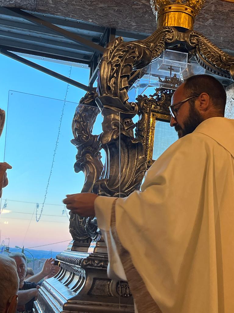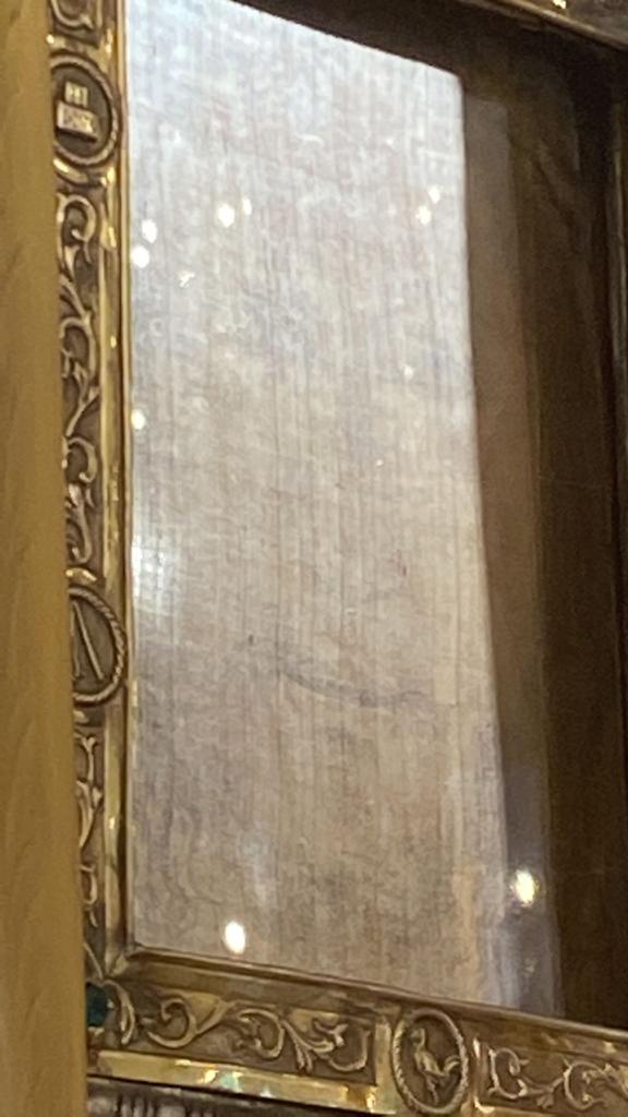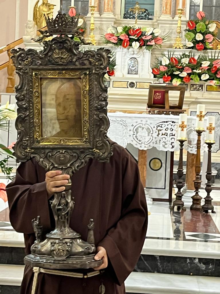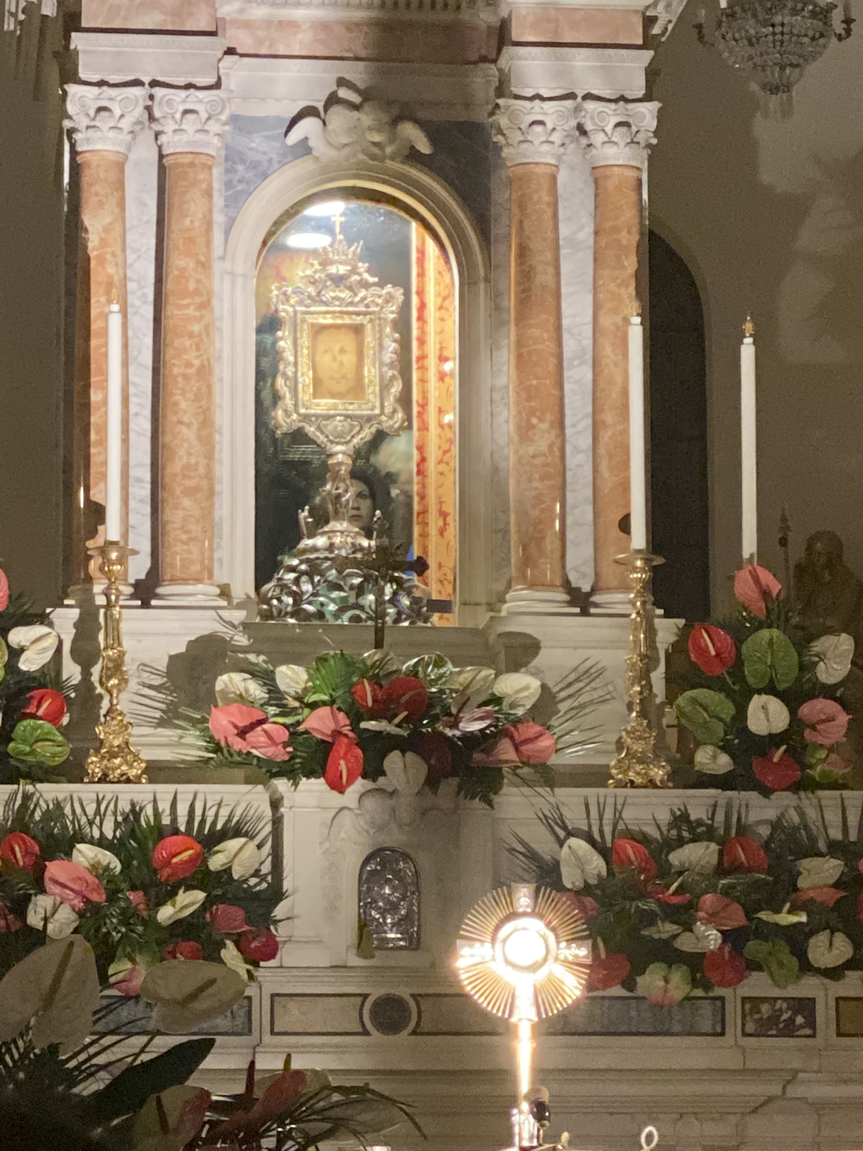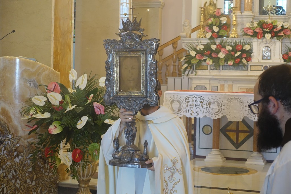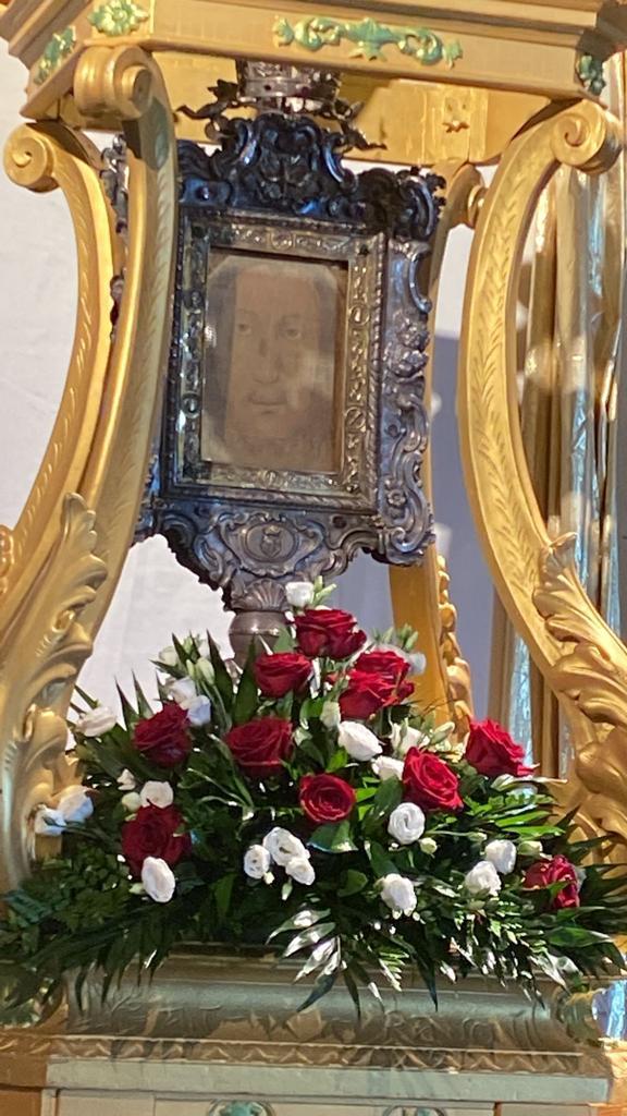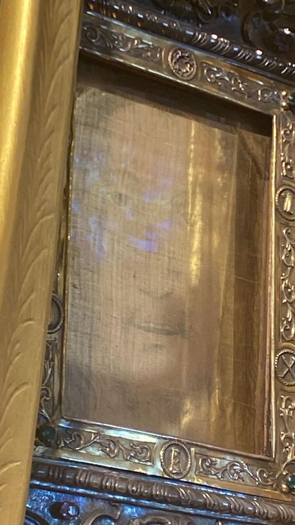 Hail! Holy Face of our Redeemer, hail! Which shines in all its majesty divine Upon the spotless veil, a priceless gift To Saint Veronica; of love the sign. Hail! Glory of all time, mirror-glass of the Saints, Wherein the blessed love for eye to gaze; Destroy within us every stain of sin, And with the elect our souls towards Thee raise. Hail, Face of God! With His own gifts adorned, Whose splendor through the ages shall not cease; Oh! make Thy light descend into our hearts, And from their earthly toils our souls release. Hail! Mighty bulwark of the Christian faith, Of heresy and lies the Victor Thou; King in the Sacred Bread, renew the strength Of all the faithful who before Thee bow. Hail! all our joy in this hard life below, So frail and fugitive, so quickly over; Sweet Picture, lead us onwards to the skies, That we may there the Face of Christ adore. Hail! noblest of all gems, celestial pearl, In Thee innumerable graces shine; No hand depicted Thee, no chisel carved, Thou wert of God alone the work divine. The tints with which Thy features He has traced Will never alter and will never fade; Changeless amidst the ravages of time, The everlasting King Thy Face may see. Forever incorrupt and free from stain, The living Christ we honour still in Thee; Thou turnest into joy our sighs and tears, Oh! grant that we, in heaven, thy Face may see. Be thou, we pray, our buckler and defense, Our consolation and refreshment sweet, That nothing hostile may our spirits harm, Till, after death, we rest at Jesus’ feet. Amen.