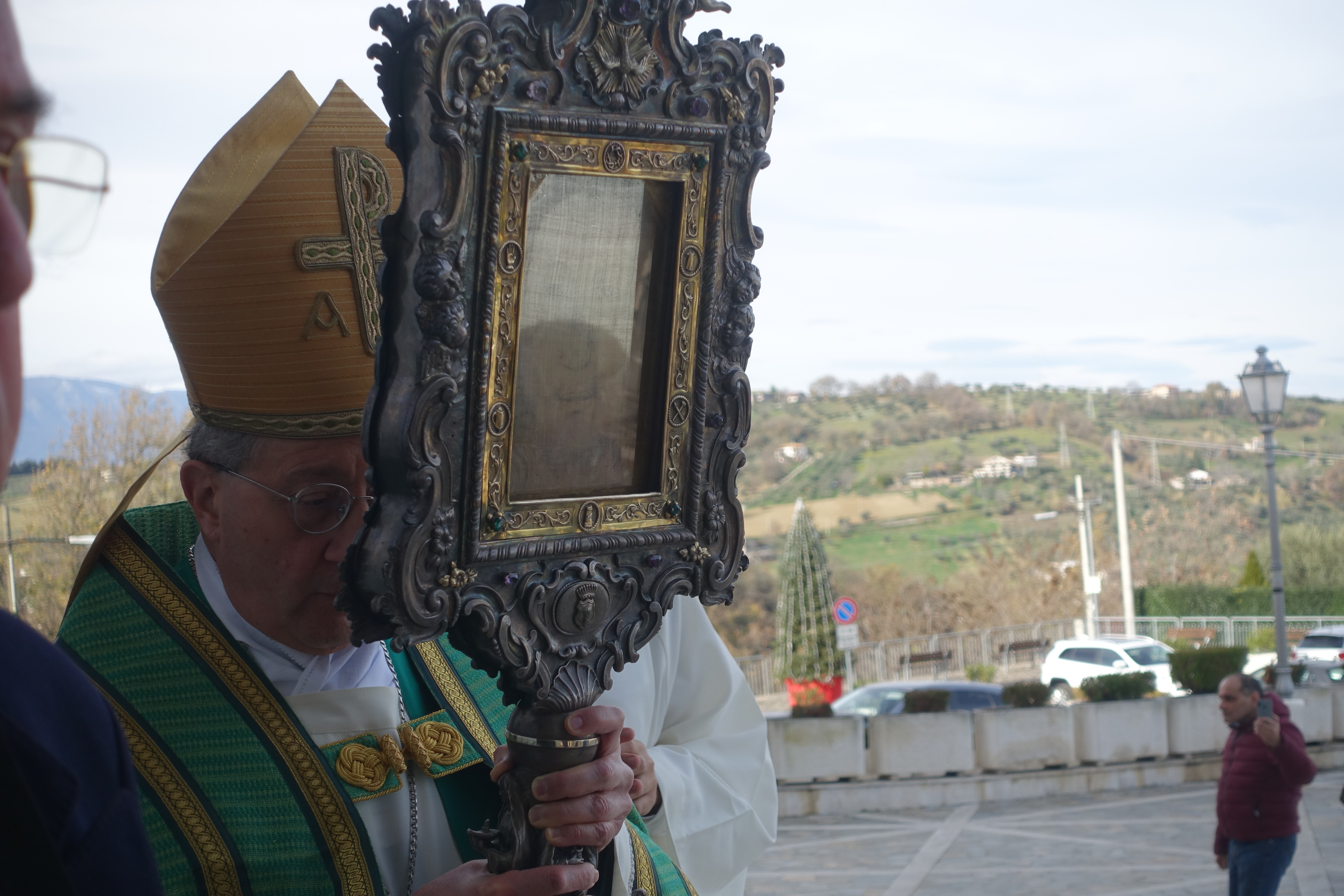 Seven years ago, on January 16, 2016, Padre Carmine Cucinelli [then the Rector of the Shrine] brought this festive event to our memory, and to the tradition of Manoppello, repeating the theme of procession, with the citizens of Manoppello along the same route in which we [the faithful celebrating “Omnis Terra] meet today. But this time — also for the first time — in grateful memory of Pope Benedict XVI, the “little prince” of the Catholic Church of our time.