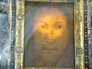 In September of 1968, as Padre Pio lay dying in San Giovanni Rotundo (which is about 200 km south of Manoppello in Italy), his friend Padre Domenico da Cese had just unlocked the doors of the shrine of the Holy Face one morning, and was astounded to find Padre Pio in prayer, in the choir behind the altar before the sacred image of the Face of Jesus. St. Padre Pio spoke then to Padre Domenico saying, “I do not trust myself any more. I am coming to an end. Pray for me. Good-bye until we meet in Paradise.” Twenty-four hours later St. Padre Pio died in his cell in San Giovanni on September 23, 1968. Testimony was later given by witnesses that Padre Domenico da Cese was seen at Padre Pio’s funeral (another case of bi-location). A film was even taken (here) which shows Padre Domenico walking slowly in Padre Pio’s funeral procession, even though Padre Domenico had never left the shrine in Manoppello.