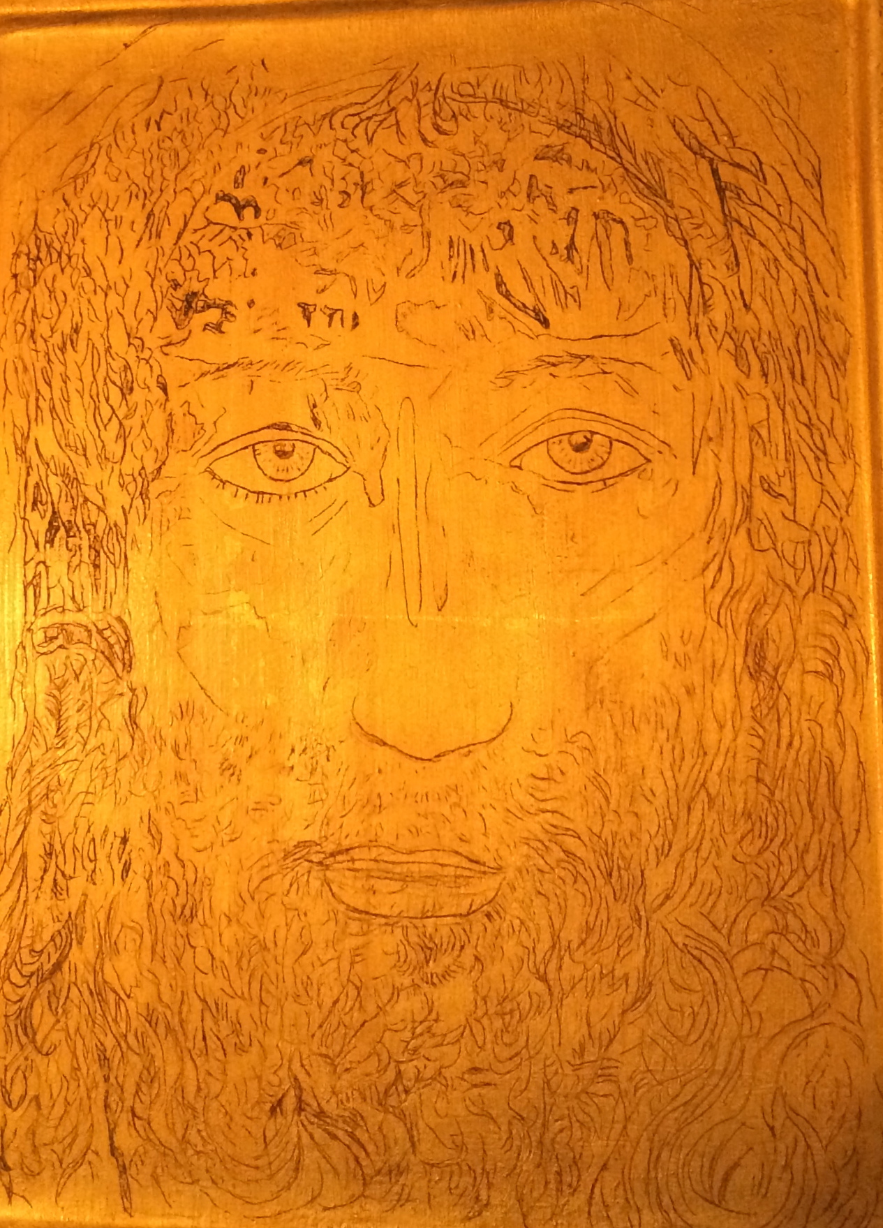 My drawing on gold-leaf on board.