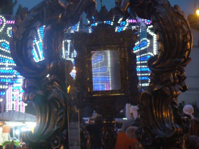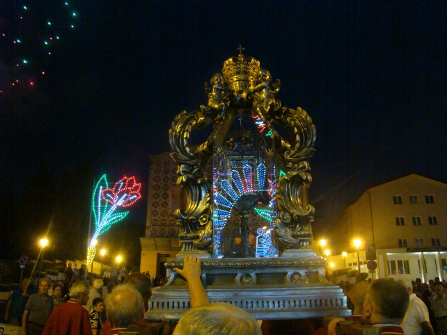 Each year, the Feast of the Transfiguration, is marked by prayer, vigils and processions in honor of the Holy Face of Jesus. On this feast day St. Therese would toss roses and sprinkle perfume on the drawing of the Holy Face of Jesus that was so dear to her heart. At the Basilica Shrine of the Holy Face in Manoppello, Italy, local residents and pilgrims from all over the world take part in the joyous festivities in honor of the Holy Face. This year includes World Youth Day pilgrims! (Thank you to Alexandra Prandell for the video and photos!) (Enjoy as well, a few pictures from past celebrations below!) Wherever you may be on this holy feast day; come before His Holy Face–by entering into His Holy Presence in prayer–so together with the whole body of Christ, in Heaven and on earth, we may say, “Lord, it is good to be here.”